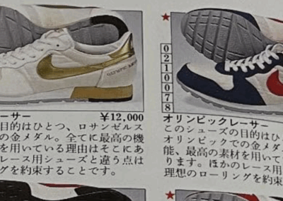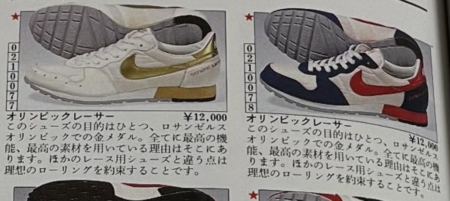 The story goes that in 1984, Nike presented Lopes with two pairs of Nikes that had been made in Japan and shipped to Los Angeles five days before the Olympic marathon. One was in red, white and blue. The other was trimmed with gold. Lopes’ wife said he should wear the gold pair, to match the colour of the medal he would win. It appears the other colourway was released as the Olympic Racer, possibly only in Japan.