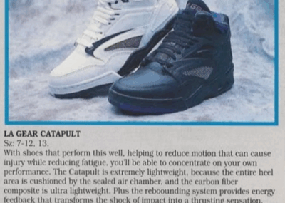 While the Power Feedback System would continue for 1992, L.A. Gear as a company would face considerable financial difficulties, filing for bankruptcy in 1998. L.A. Gear apparently still managed to release an updated version of the technology dubbed the Twistapult for 1993, however apart from the logo included in this article I have been unable to find any further information on this mystery basketball shoe.