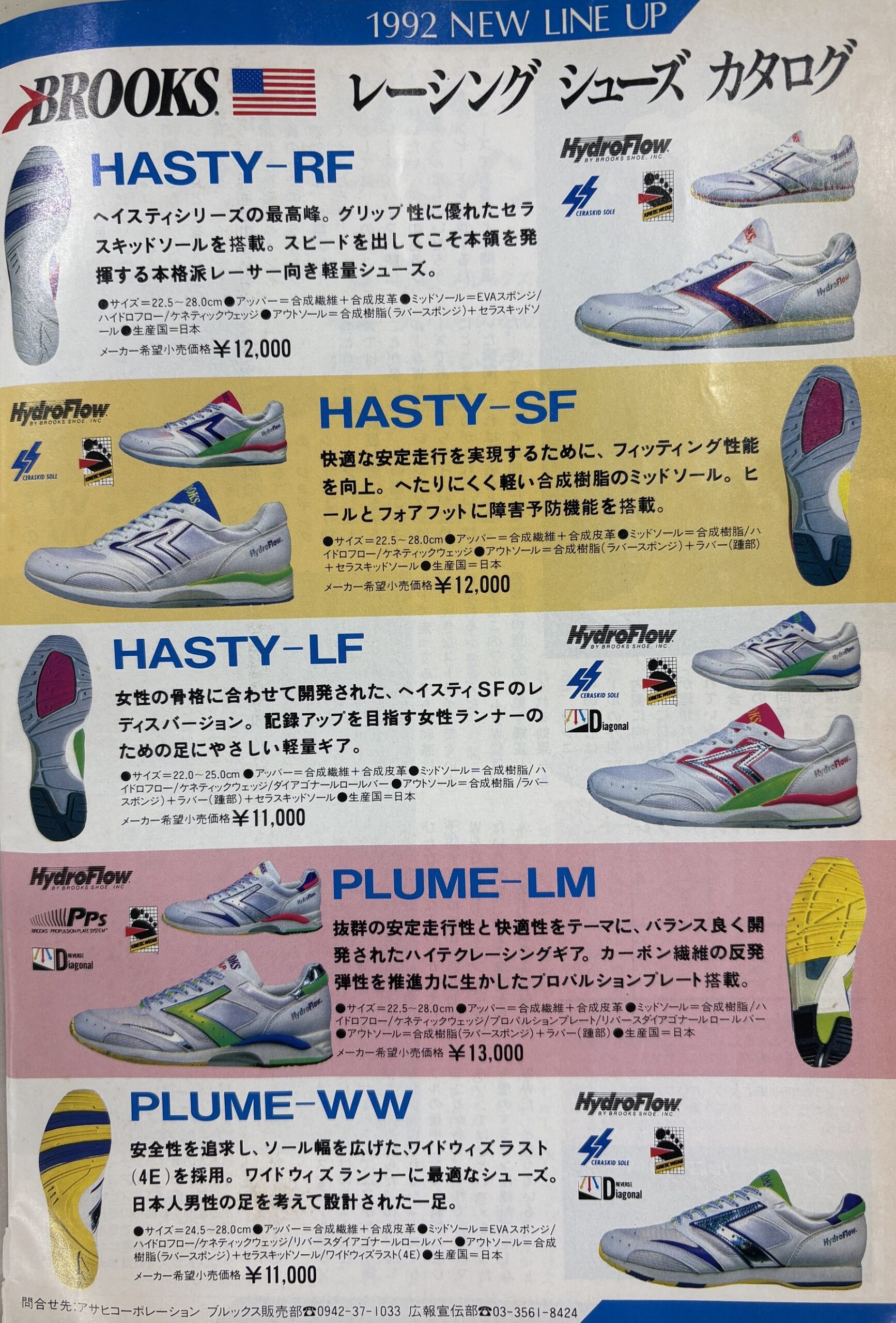 Although not pitched as an elite racing flat, instead being suitable for amateur racers as well as faster training paces, the Plume LM had the same ingredients as the Fusion but in its most streamlined form yet. Firstly there was the upper that was quite similar to the Brooks Hasty RF, a traditional racing flat also marketed for the Japanese market, which would have kept weight down.