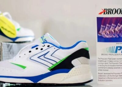 Before we move to the story of how Fila democratised access to its Carbon-Kevlar plate technology, it should be recognised that it was Brooks who created the first ever commercially available running shoe equipped with full-length carbon-fibre plates. During the eighties and leading into the nineties, Brooks were experimenting with many ideas to try differentiate themselves from the competition, but one was particularly revolutionary. Brooks dubbed the technology the Propulsion Plate System.