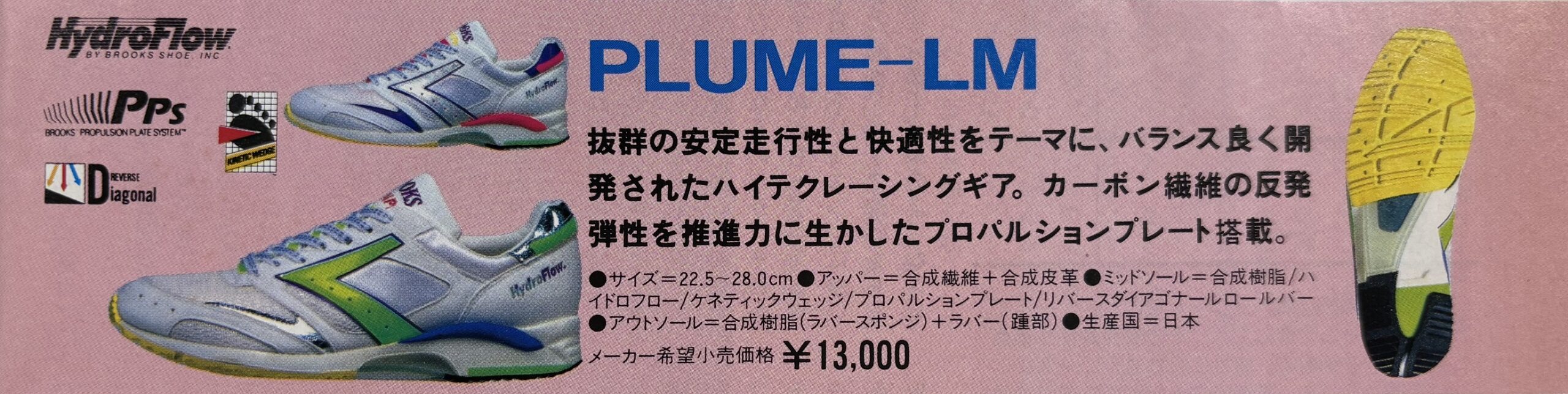 Both models had co-moulded midsoles and outsoles, which saved crucial weight but meant that they would have needed considerable re-design to include the Propulsion Plate System. As it was, the Conquest and Kona Blast were more than competitive enough without needing to risk inclusion of the technology. As it was, Brooks would take no less than five seperate models to market for 1992 with carbon-fibre plates, including the Plume LM which was exclusive to the Japanese market and arguably the most interesting of the quintet.
