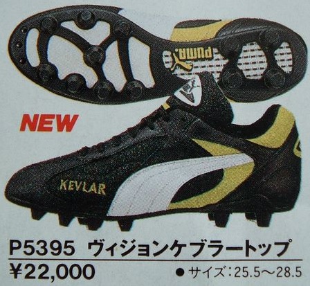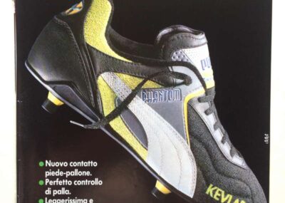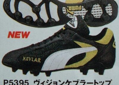 Interestingly it was Puma who was first to use Kevlar for football boots, the fabric also supplied by Schoeller Textiles, for the 1992 Phantom and the 1993 Vision. While benefiting from all of the characteristics of Kevlar, Puma appears to have quietly shelved the technology after these two models and focussed on other priorities. Many years later Nike would create an even more extreme take on the concept, the 2008 Nike Mercurial Vapor SL featuring an upper made entirely of carbon-fibre (as well as the outsole plate).