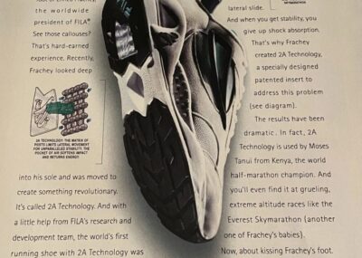 As you just read, Fila did not use a full-length Carbon-Kevlar plate for the Racer, having almost dropped the concept entirely for the model. The split system was only included after senior management intervened and put Filippo Pavesi onto the project at the last moment, one of the early signs of the dysfunction beginning to creep into Fila. It also meant that there was no immediate sequel to the Visionary. Their next training shoe with the plate technology would not release until 2001.