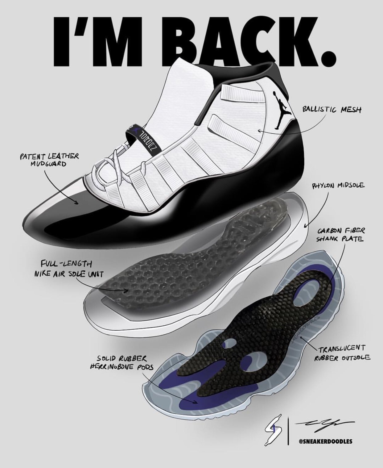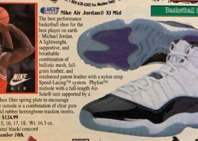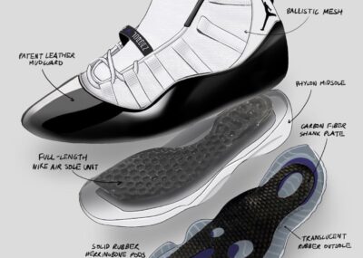 By 1995, the latest model in the storied Air Jordan franchise would feature a full-length carbon-fibre plate, designer Tinker Hatfield pairing it with a full-length Nike Air unit to ensure the Air Jordan XI was ready for the return of Michael Jordan to elite basketball competition. Interestingly the plate was described in advertisements as a spring plate to encourage elevation.