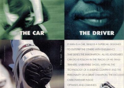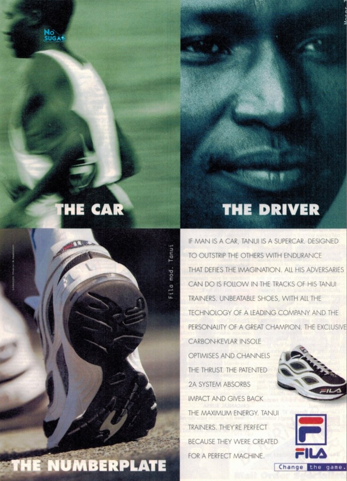 What however of the motorsport adage coined by Ford luminary Bob Tasca of ‘win on Sunday, sell on Monday’? Fila were acutely aware of this, and while developing the Silva Racer were preparing to put the exact same Carbon-Kevlar plate into something more usable for the everyday runner. They would release the Tanui in 1997. Named after the legendary distance runner Moses Tanui, who at that time held the half-marathon world record, it was the training companion to the Silva Racer. It had a much higher stack height, EVA foam with the 2A cushioning system developed by Fila under the rearfoot.