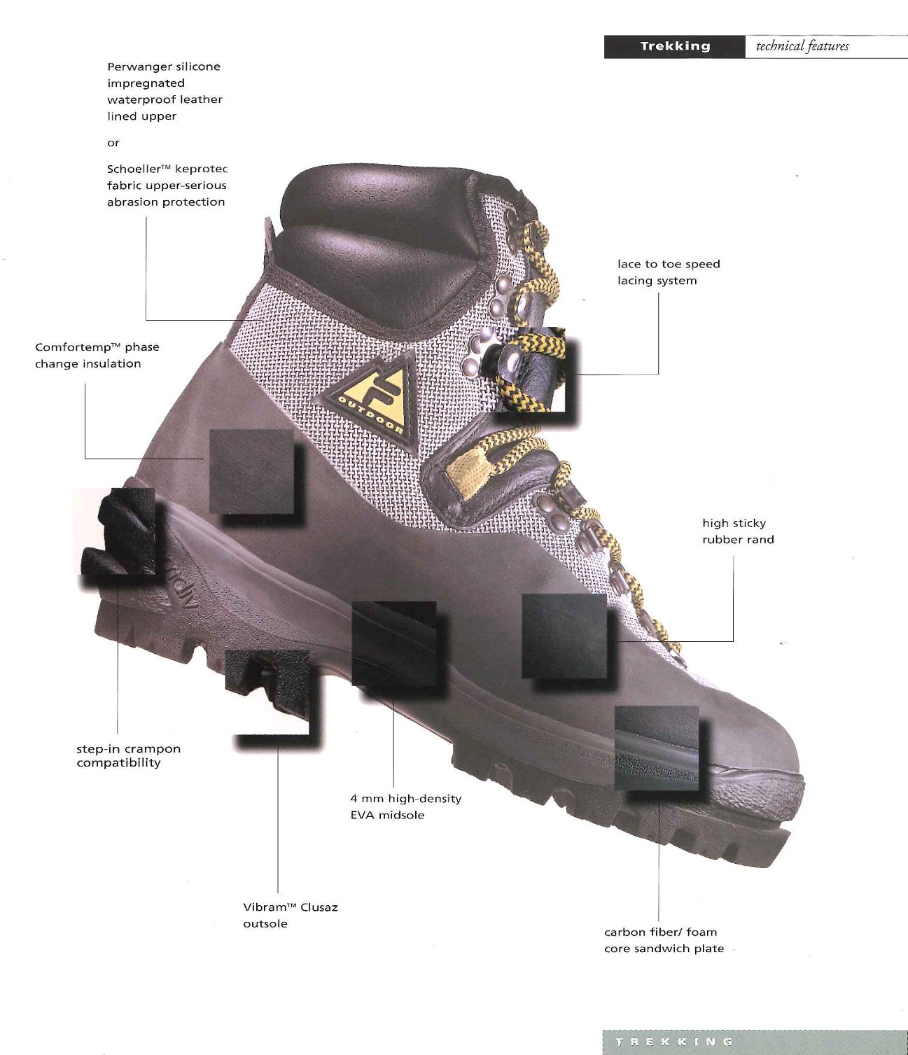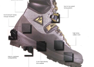 Come 1998, Fila would release the Aguirre. Looking like an otherwise conventional and stylish mountaineering boot, it boasted a Carbon-Kevlar reinforced shank in the midsole. Very different in design to what was being used for the Silva Racer, it provided great strength to the boot while reducing weight compared with the metal shanks used by some other brands.