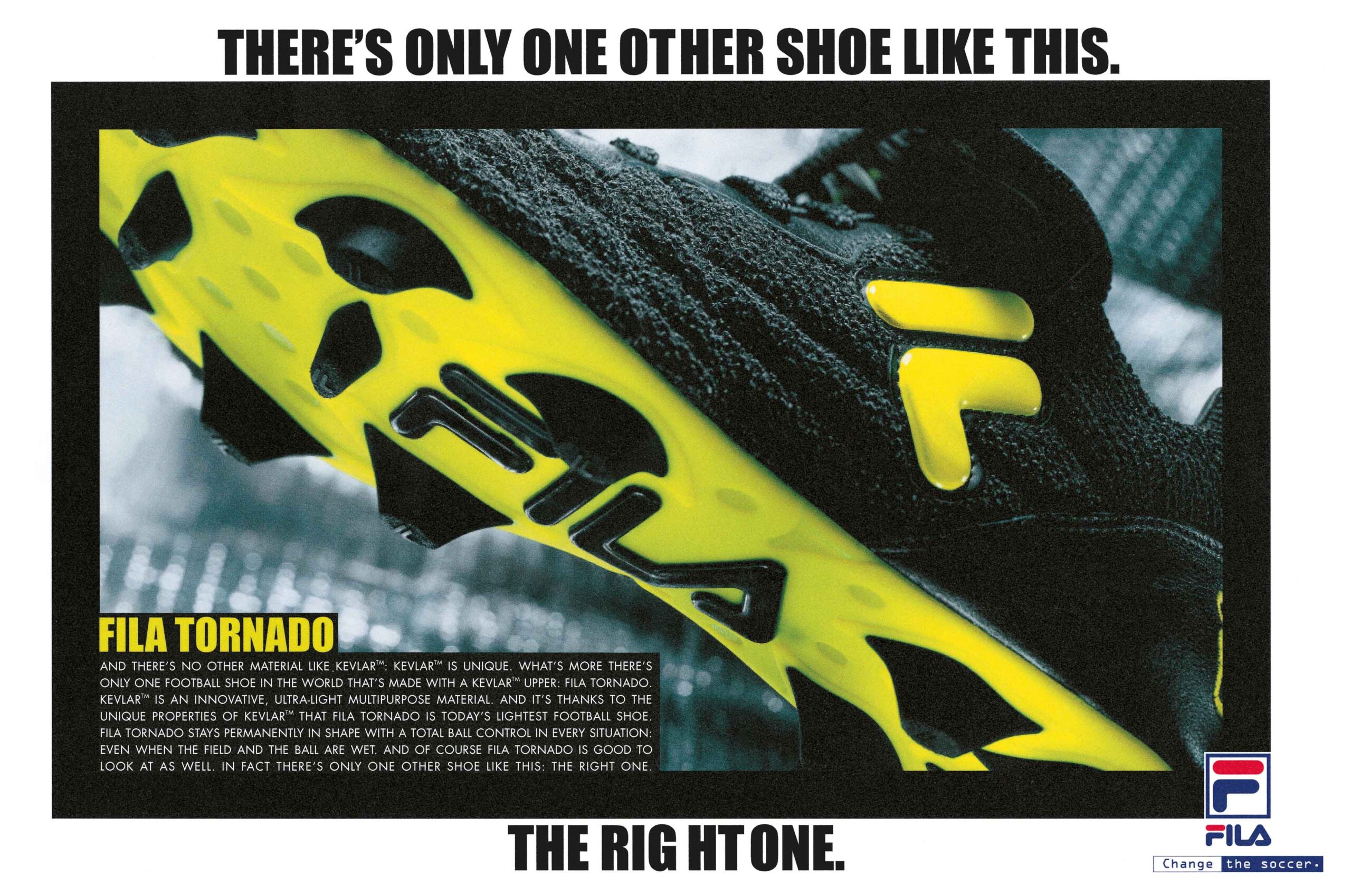 More significantly was the introduction of Kevlar fabric to the upper of both the FGT 320 K1 and the FGT 340 K1, joining the Carbon-Kevlar within the midsole. Using the specific version created by Schoeller Textiles, it was lightweight and extremely durable. The fabric was also relatively soft, making it perfect for running shoes. This was not the first time that Fila had used Kevlar to make uppers of athletic footwear. In 1998 they released the Tornado football boot, called the Fascino in other markets, which used the material to give added strength while reducing weight compared with more traditional materials.