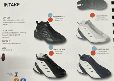 SpeedTech would also find its way into basketball courts courtesy of the Intake, Seize, and Rossa models released between 2000 and 2002. The Seize and Rossa used Carbon-Kevlar to make the shoes stable during the rapid movements required for elite basketball competition. To be clear, this was not by any means the first time either carbon-fibre or plates were used in basketball shoes to aid performance. All the way back in 1991 L.A. Gear were working hard to create basketball shoes that pushed the technological envelope so that their brand could be taken more seriously.