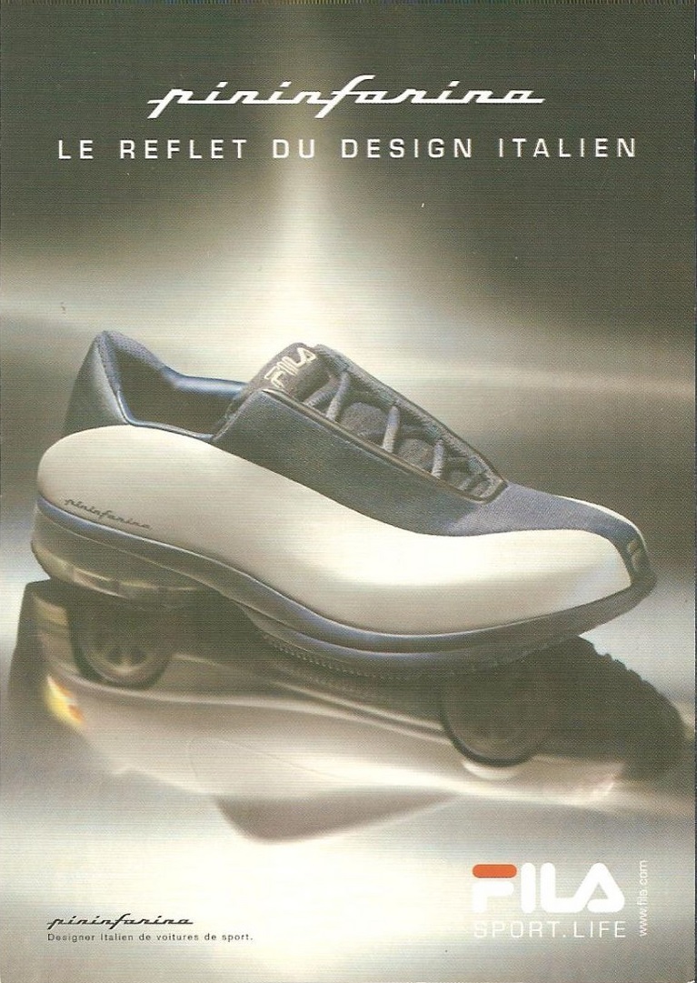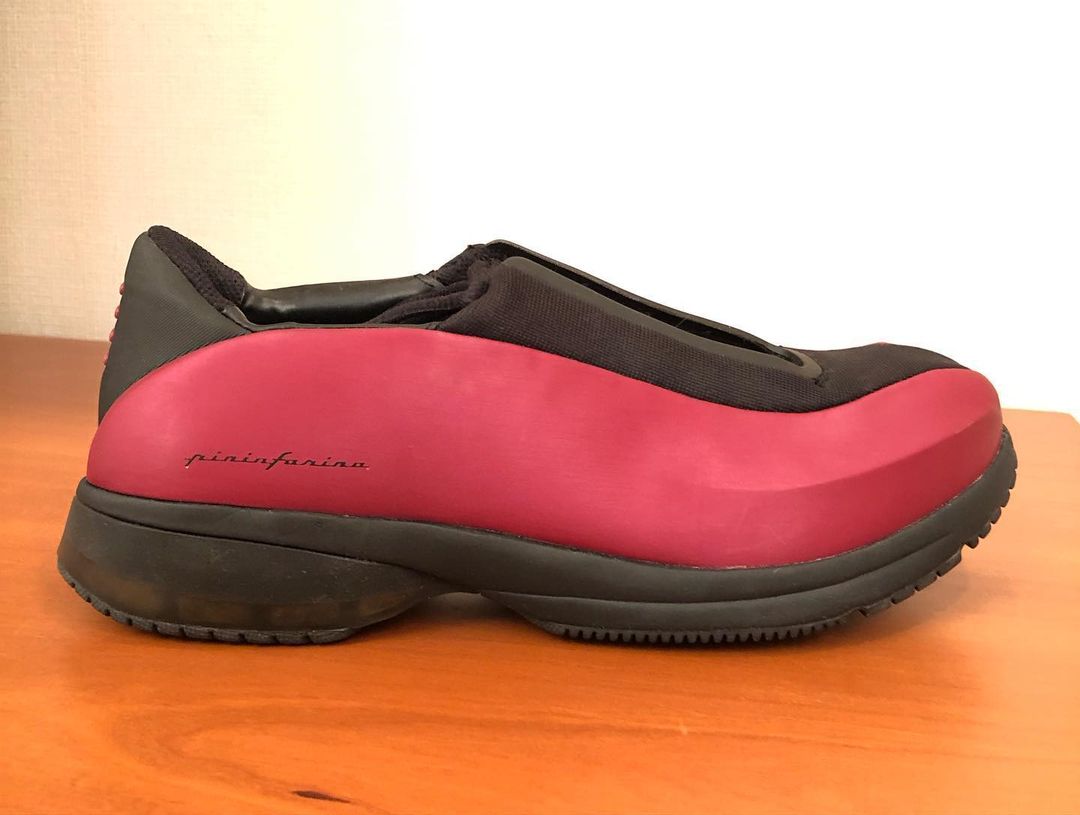 Alongside the F1 High Speed, Fila would release an even more explicitly motorsport-inspired shoe designed by Motoki Yoshio who specialised in transportation design. Called the Pininfarina, after the famous Italian coachbuilder, it had large uninterrupted swatches of leather to further enhance its automotive appearance. Beneath the upper was an extensive Carbon-Kevlar plate, although it is unclear whether it was more for show than outright performance.