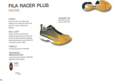 2003 would also see Fila releasing the final evolution of the FGT series, the FGT 1000. Every lesson Fila and Favaro had learned from previous models was applied, resulting in a flexible daily trainer that was comfortable at slower paced but equally capable of picking up the pace. Although the foam of the time did not allow for the lightweight speed trainers we enjoy today, it still came in at an otherwise respectable 333 grams. Even so, Favaro commented in an interview that this was still heavier than he would have preferred.