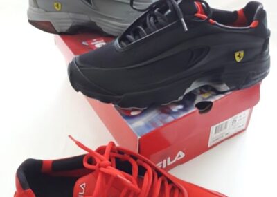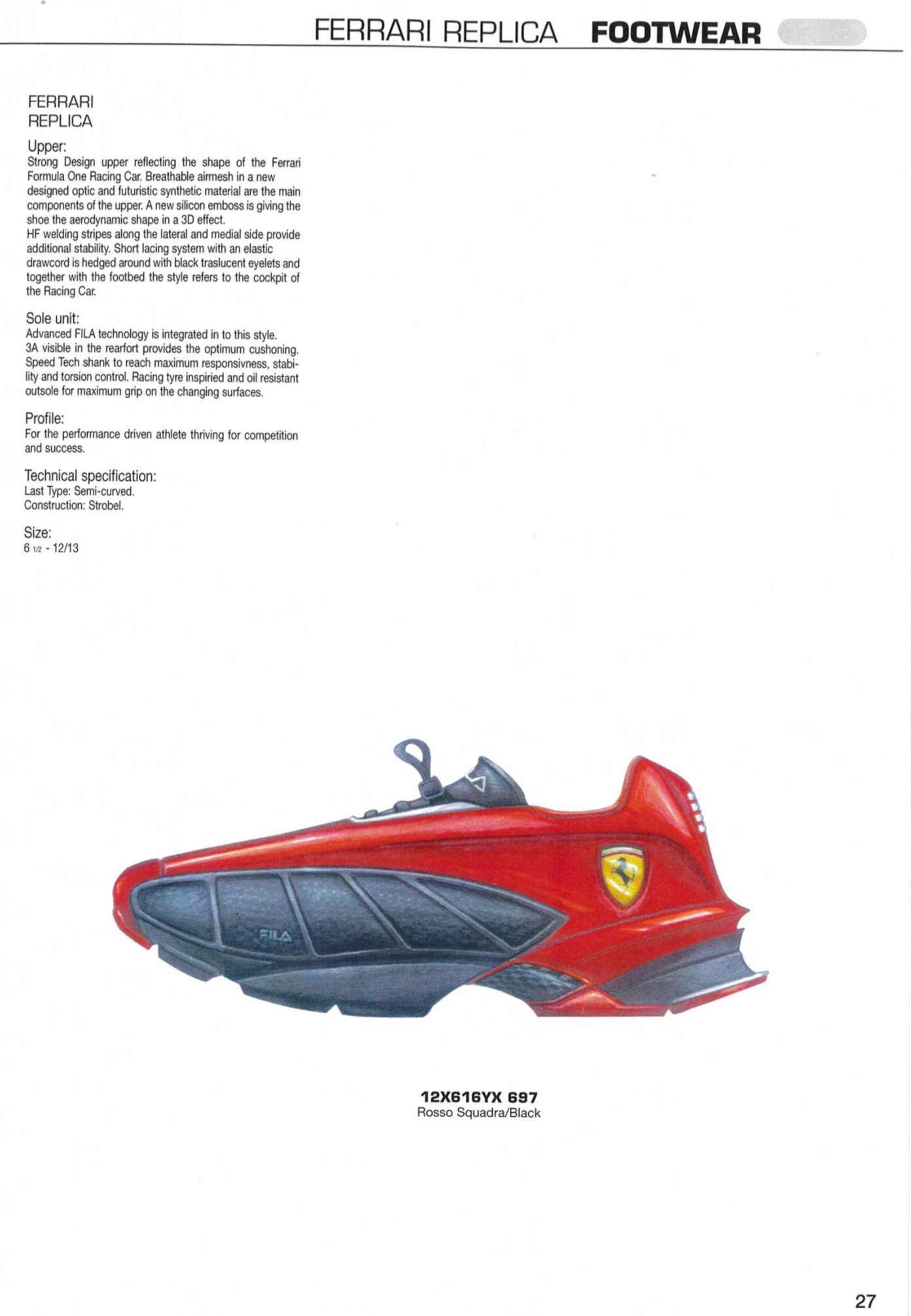 Fila would use the same midsole unit, complete with Carbon-Kevlar plate, for the F2003 model designed by Favaro as part of their sponsorship deal with the Ferrari Formula One team. While this would have made the model highly capable for running, the upper was primarily made of leather with little breathability. As with the F2002, the model was designed more as an artistic homage to motorsport. The F2004 model sadly had no Carbon-Kevlar plate at all, the only use of the material purely aesthetic as part of its upper.