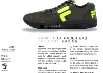 Fast forward back to 2003, Fila were also beginning to look into potentially using Carbon-Kevlar for the upper of its running shoes, including the Racer series. These never left the prototype phase, I reached out to Schoeller Textiles to see if they had any more information on their work with Fila (including any shelved prototypes) but sadly they did not.