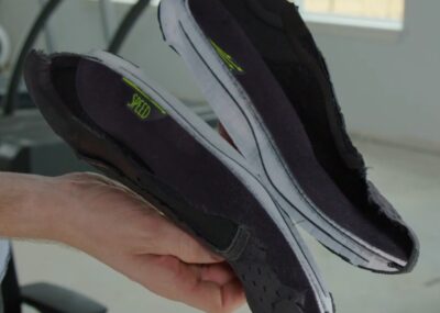 Beneath this was the same carbon-fibre plate and HydrowFlow cushion, as well as another innovation from Brooks called the Kinetic Wedge. Having been used in several models since the 1986 Nexus, it was in effect a specially designed wedge beneath the foot to help relieve pressure on the toe joint.